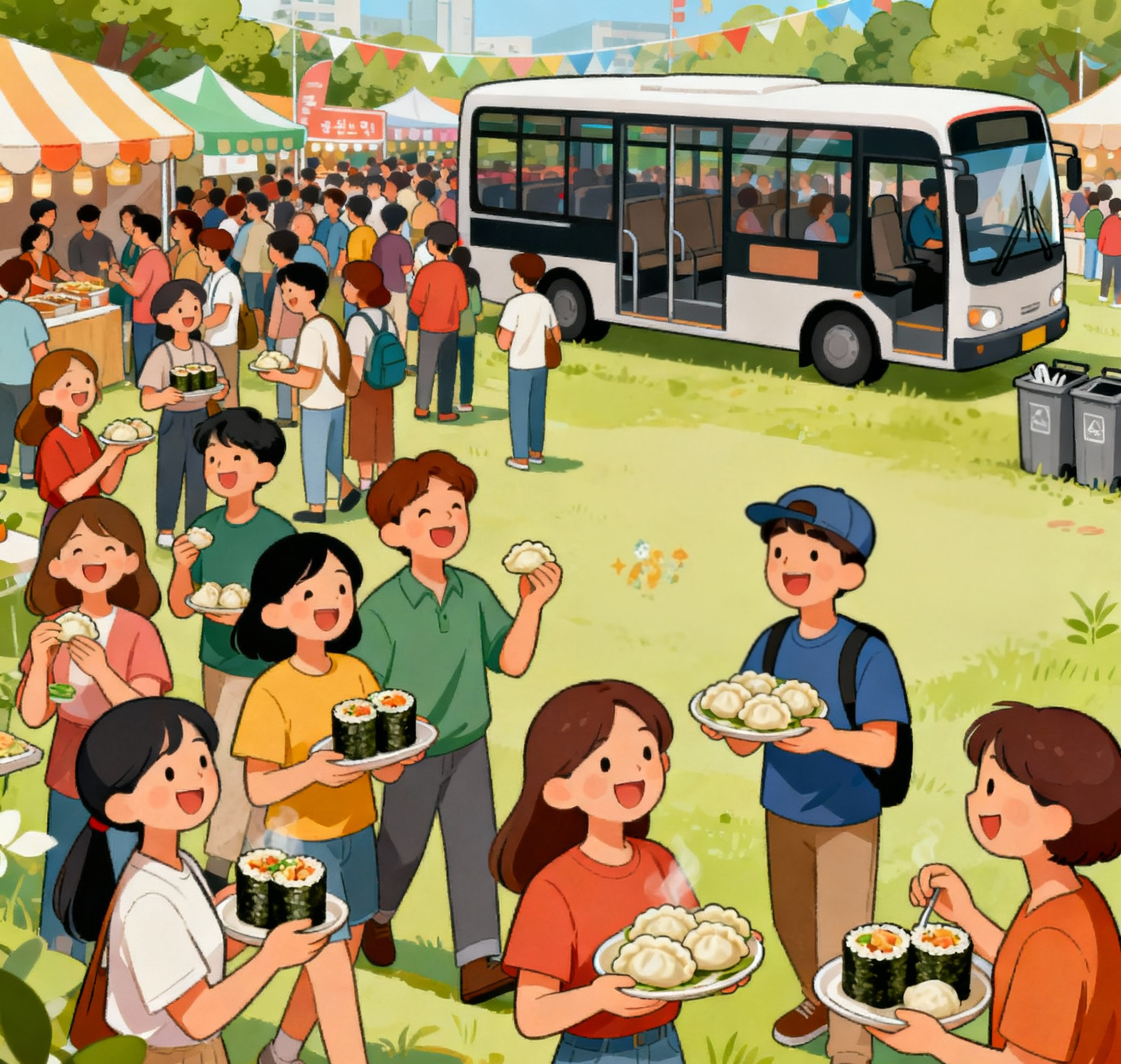 - 축제마다 '김밥 4줄 한정', '만두 빚기 교실' 등 현장에서만 즐길 수 있는 특별 이벤트나 구매 제한이 있을 수 있습니다.