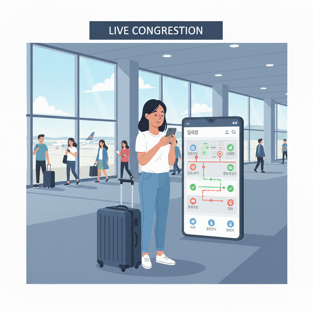 이제 스마트폰으로 실시간 혼잡도를 미리 확인하고 가장 빠른 출국장을 선택할 수 있습니다.