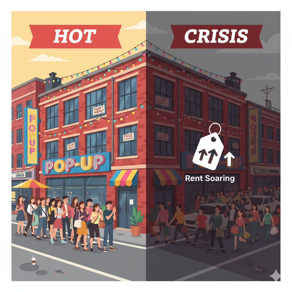 - '정체성을 지키는' 동네: 붉은 벽돌 같은 물리적 상징을 넘어, 성공한 팝업이 장기 매장으로 정착하도록 유도하고, 단기 임대의 사각지대를 보완할 새로운 정책이 필요합니다.