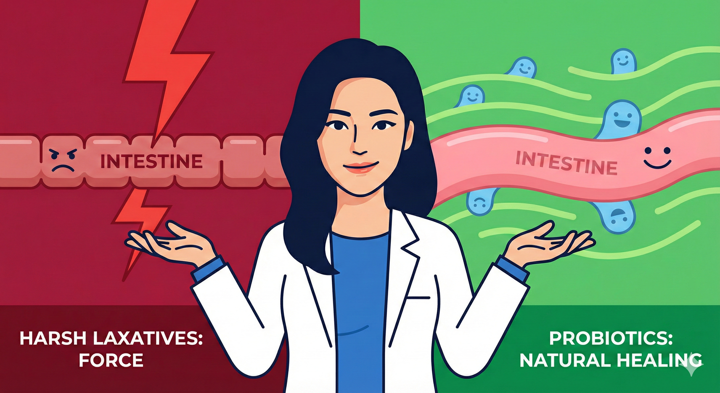 약국에서 파는 자극성 하제는 장 점막과 신경을 직접 자극한다. 당장 변이 나오지만, 이는 당신의 장을 강제로 움직이게 하는 것이다. 마치 피곤한 말을 채찍질로 억지로 달리게 하는 것과 같다.