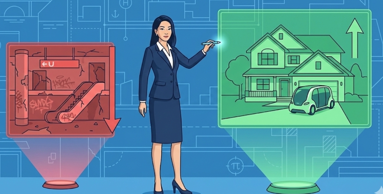 • 직주근접의 해체: 이동 스트레스가 사라지면 사람들은 도심에서 30~40분 떨어진 '쾌적한 교외 대저택'을 선택할 것입니다.