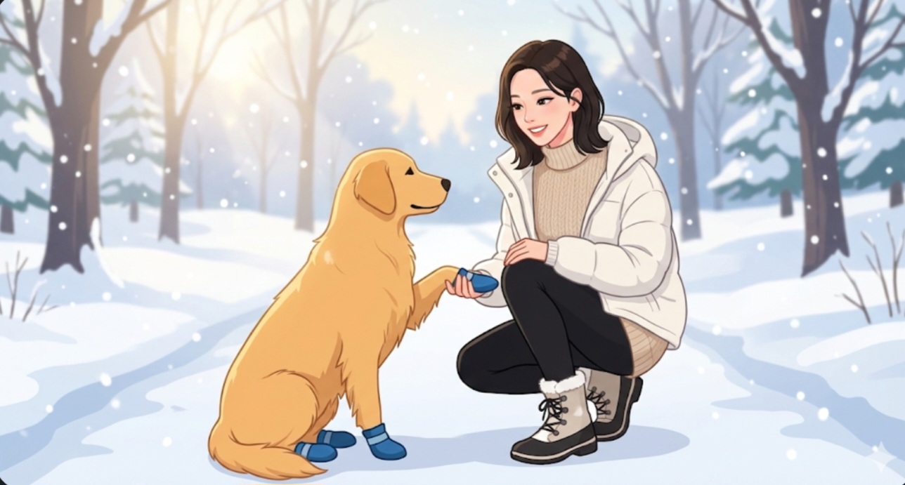 - 발바닥 털 관리: 털 사이사이에 염화칼슘 알갱이나 눈이 뭉쳐 '얼음 공'이 되면 통증을 유발합니다. 털을 너무 바짝 깎지 말고(피부 보호), 패드 덮는 털만 깔끔하게 정리해 주세요.