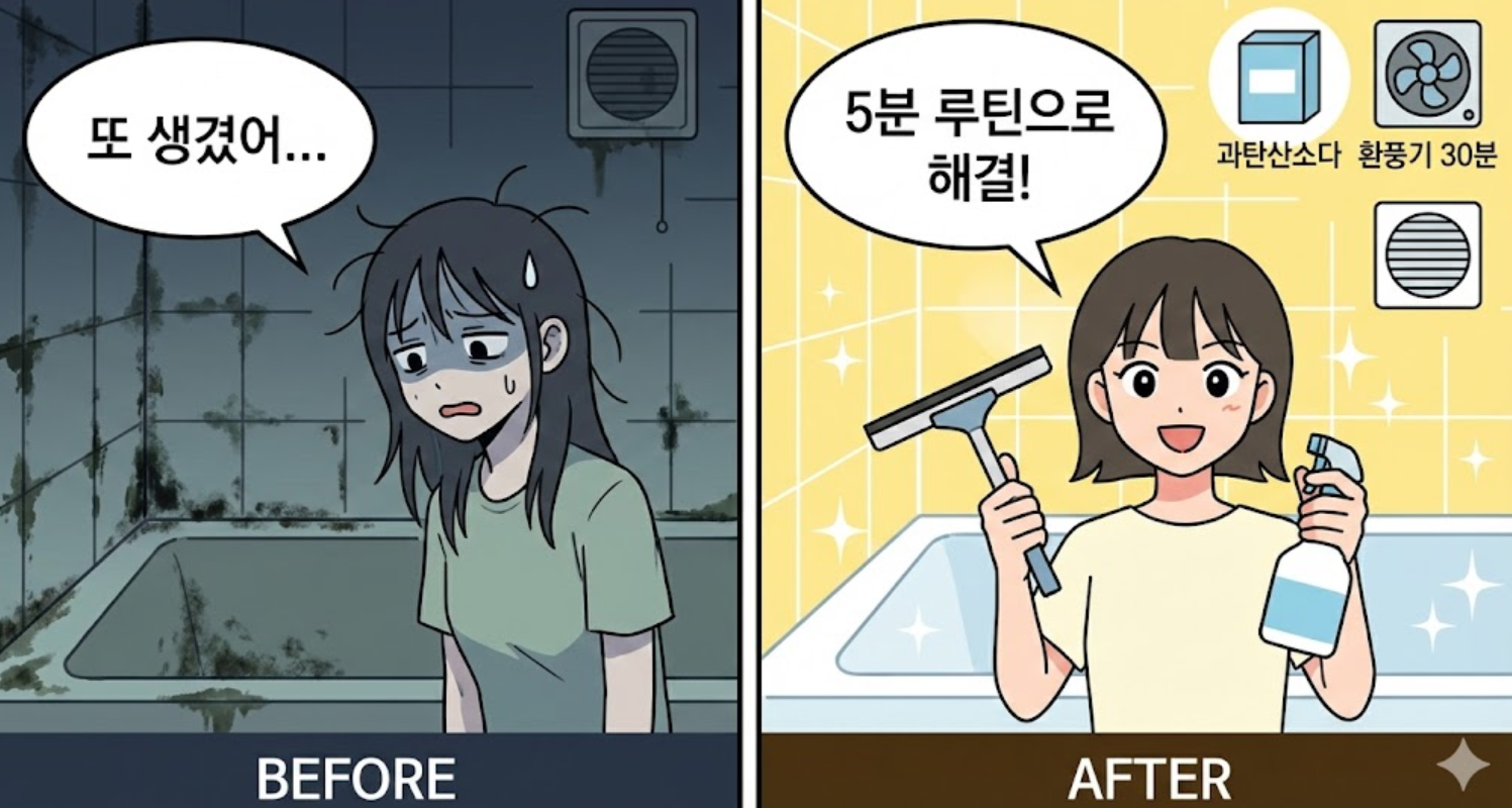 하지만 하루 5분 루틴만 지키면, 곰팡이가 "자랄 수 없는 환경"을 만들 수 있습니다.