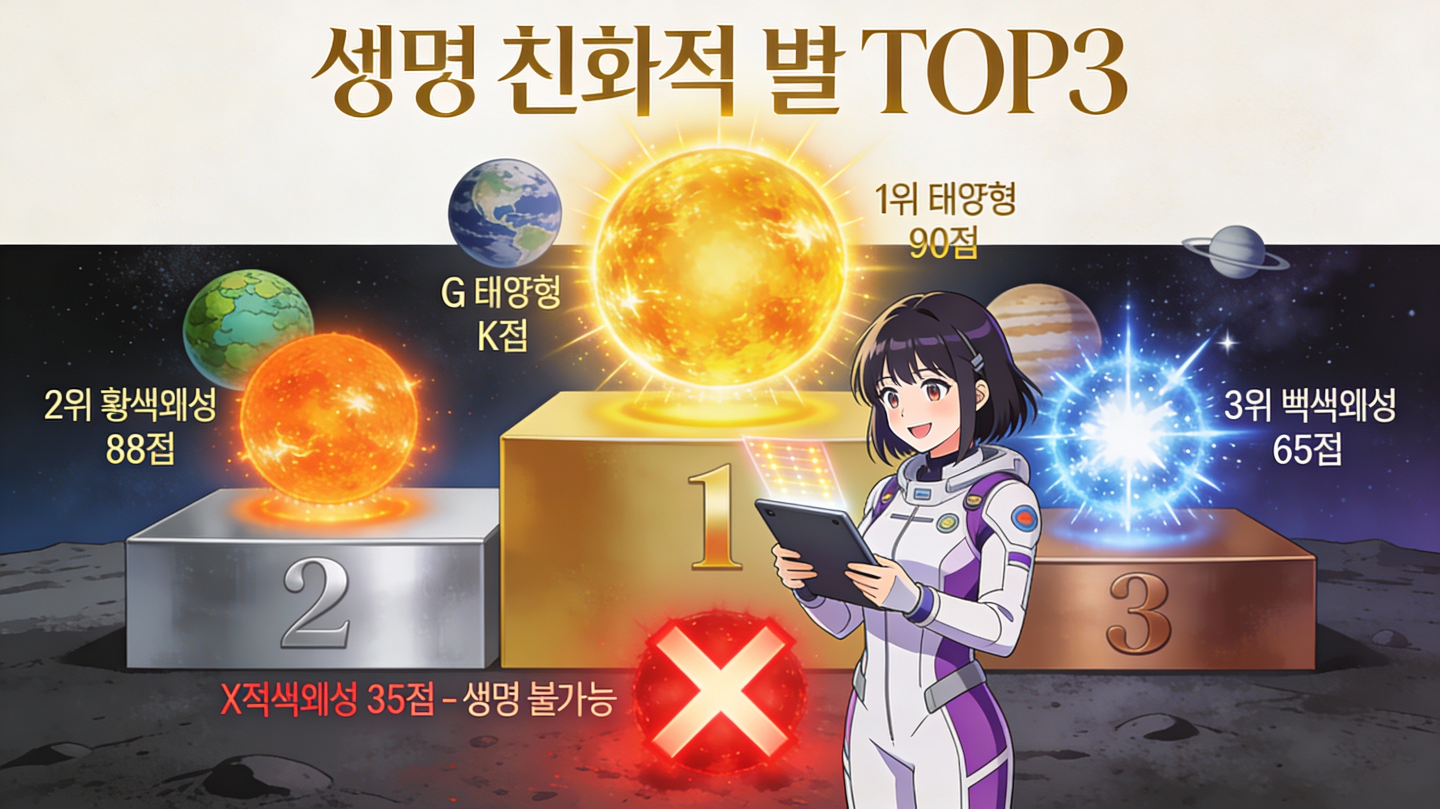 그렇다면 어떤 별이 생명에 최적일까요? NASA 데이터와 케플러 우주망원경 4,000개 외계행성 관측을 바탕으로, 실제 과학이 추천하는 생명 친화적 별 TOP3을 완벽 비교합니다. 태양형이 왜 1위인지, 크기·안정성·에너지 균형까지 데이터로 검증해 드리겠습니다.