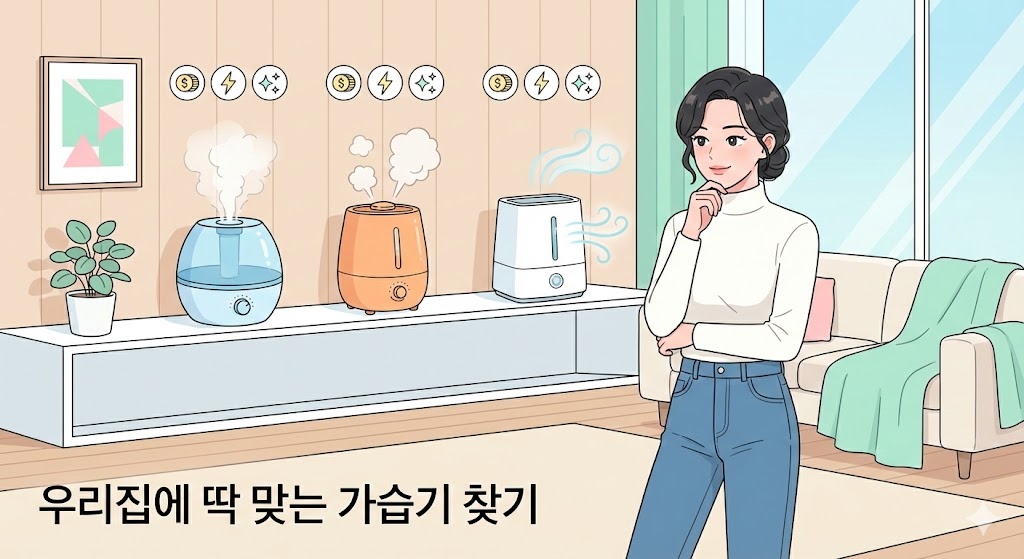 가습기를 고를 때 가장 중요한 건 디자인이 아닙니다. '물을 어떻게 공기 중으로 날려 보내느냐', 즉 구동 방식이 핵심입니다. 이 방식에 따라 전기요금, 세균 번식 위험, 관리 난이도가 180도 달라지기 때문입니다.
