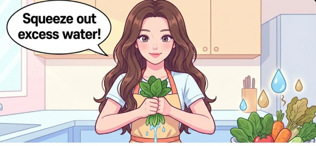 한국식: 채소 물기 제거 → Remove the water.