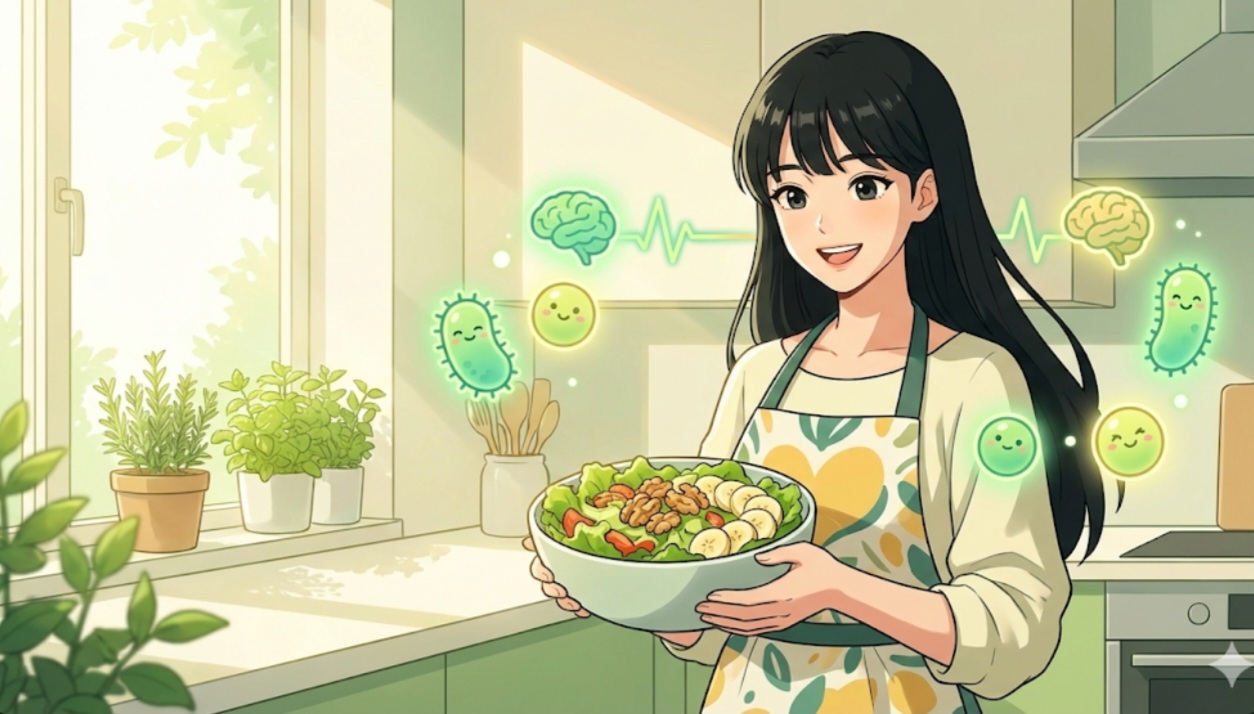 - 유해균이 많으면: 뇌에 염증 신호를 보내 불안과 우울을 유발하고, 자극적인 단 음식(설탕)을 당기게 만듭니다.