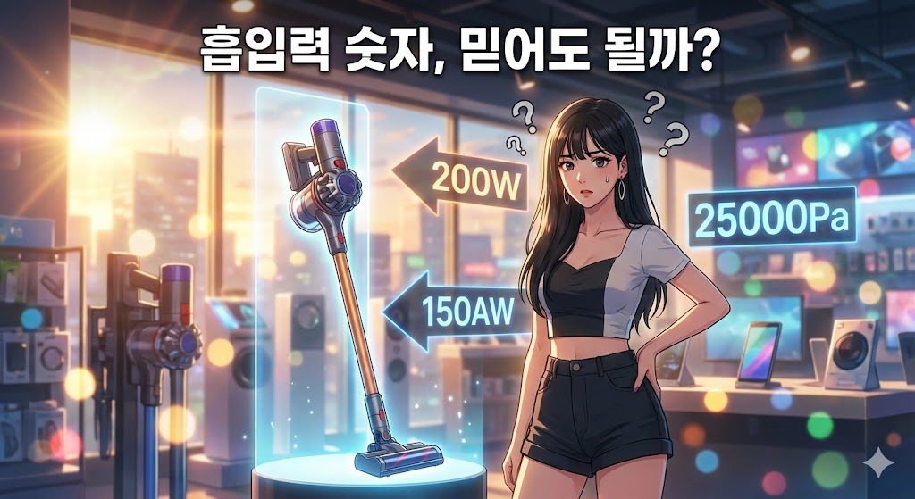 다행히 2026년부터는 통일된 기준이 적용됩니다. 그 전까지는 와트(W)나 에어와트(AW)로 표기된 제품을 우선하고, 파스칼만 나온 제품은 제조사에 실제 와트 환산값을 문의하세요. 흡입력은 청소기의 핵심 성능이지만 유일한 기준은 아닙니다. 배터리 시간, 무게, 소음, 필터 성능, A/S 등을 종합적으로 고려해야 합니다. 하지만 적어도 흡입력 숫자에 속지 않는 눈은 이제 갖추셨을 겁니다.