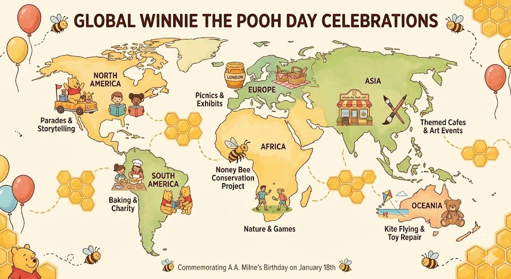 1월 18일, 전 세계 곰돌이 푸 팬들은 다양한 방식으로 이 날을 기념합니다.