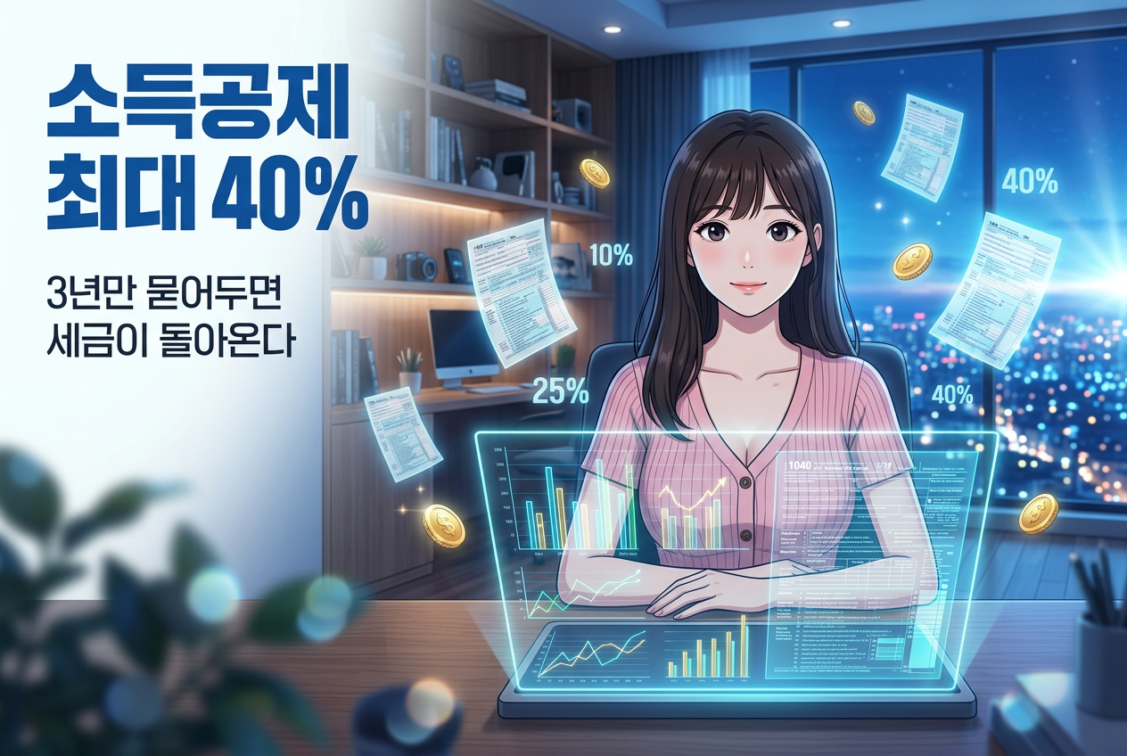 국민성장펀드의 가장 큰 매력은 바로 파격적인 세금 혜택입니다. 3년 이상 투자를 유지하면 투자 금액에 따라 최대 40% 소득공제를 받을 수 있어요.