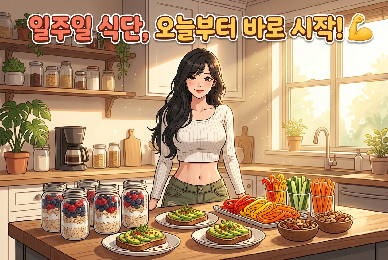 매일 같은 것만 먹으면 3일 안에 질립니다. 아래 7일 사이클로 돌리면 지치지 않고 꾸준히 유지할 수 있습니다.