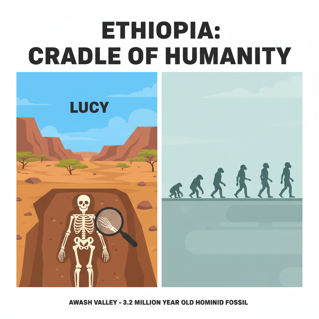 에티오피아의 역사는 인류의 기원과 맞닿아 있습니다. 아프리카 '인류의 요람'으로 불리는 이곳 아와시 계곡에서는 약 320만 년 전의 인류 화석 '루시(Lucy)'(오스트랄로피테쿠스 아파렌시스)가 발견되었습니다. 이는 에티오피아가 초기 인류 진화의 핵심 무대였음을 증명하는 강력한 증거입니다.